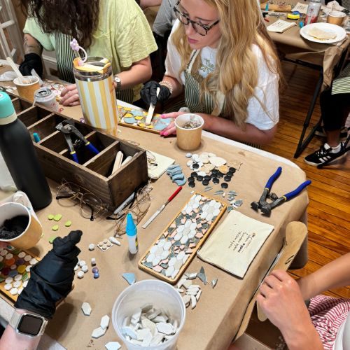 You’ll learn how to cut tile, lay a mosaic, and grout your own custom tray — but you’ll also leave with something deeper: a reminder that the pieces of your life can come together in ways you didn’t expect.